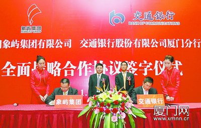 此外,交通銀行將充分發(fā)揮國(guó)際化、綜合化的優(yōu)勢(shì),為象嶼集團(tuán)提供現(xiàn)金管理、投資銀行、供應(yīng)鏈、信托等“一攬子”金融產(chǎn)品和“一站式”金融服務(wù),全面介入象嶼集團(tuán)的各項(xiàng)業(yè)務(wù)。