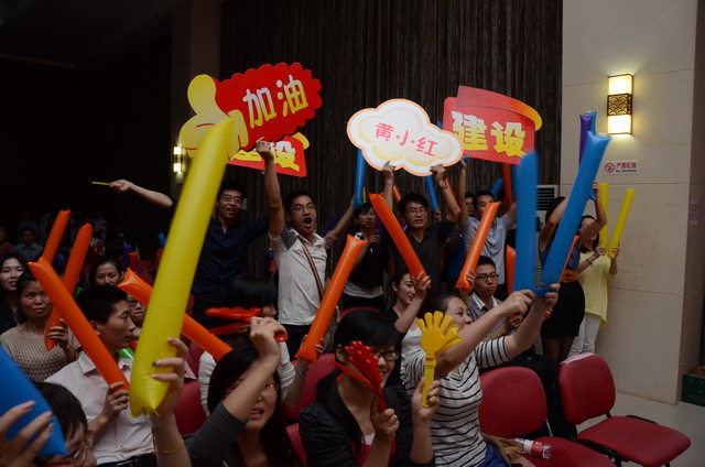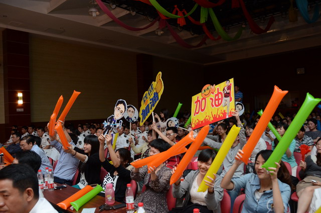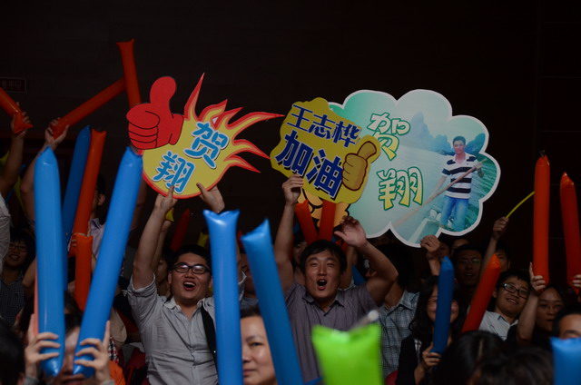 在激揚的歌曲聯(lián)唱《五月的花?!分?,歌唱比賽正式開始。16名選手按組別輪流登場,現(xiàn)場精彩萬分。歌聲或激蕩高昂,或宛轉(zhuǎn)悠揚,或徐徐如風(fēng),或渾厚有力;表現(xiàn)力或動感十足,或動靜相宜,或幽靜宜人;曲風(fēng)各異,或熱辣奔放,或溫暖抒情,或自然歡快,或懷舊悠揚。啦啦隊陣容也不容小覷,加油牌、口哨、熒光棒一應(yīng)俱全,或歌唱伊始吶喊助威,或伴隨著歌聲興奮地?fù)]舞著手臂,更有甚者激動地走到臺上為選手喝彩,臺上臺下照相印襯、融為一體。期間,軍企拉歌、擊鼓傳花等活動環(huán)節(jié)也將比賽推向一個又一個高潮。