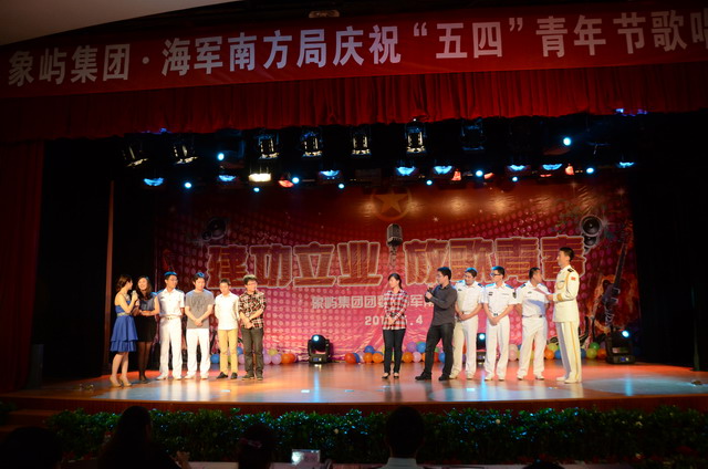 五月的花海,飛揚的青春!為慶祝中國共產(chǎn)主義青年團(tuán)成立90周年,象嶼集團(tuán)團(tuán)委和海軍南方局團(tuán)委共同舉辦 “建功立業(yè),放歌青春”慶祝“五四”青年節(jié)歌唱比賽,來自兩個單位的16名決賽選手登臺獻(xiàn)藝,在廈公司領(lǐng)導(dǎo)、員工,以及共建單位海軍南方局官兵近三百五十人到場吶喊助威。